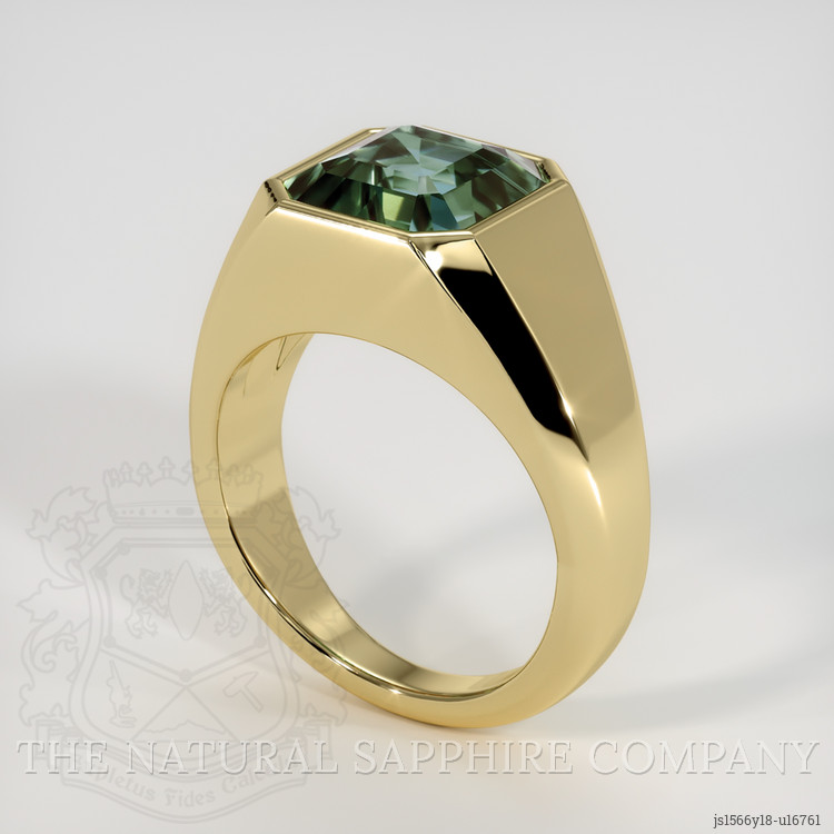 Men's Bluish Green Sapphire Ring 6.43 Ct., 18K Yellow Gold