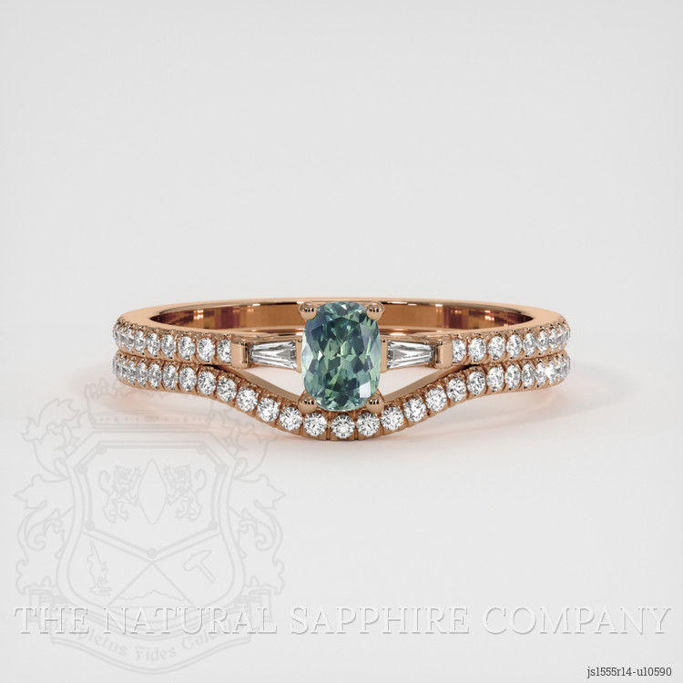 Three Stone Bluish Green Sapphire Ring 0.52 Ct., 14K Rose Gold
