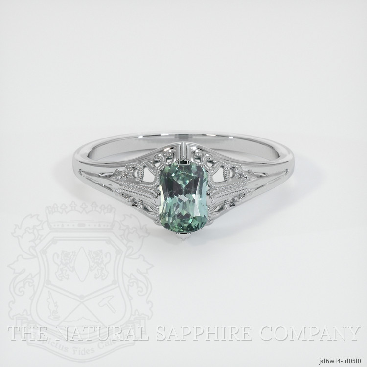 Antique Style Bluish Green Sapphire Ring 0.54 Ct., 14K White Gold