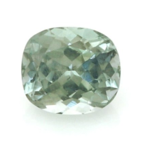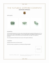 The ring features a beautiful, transparent 0.67 carat cushion shape bluish green sapphire with the dimensions of 5.13 x 4.54 x 3.37 mm and a mixed brilliant cut. It has a clarity grade of very slightly included (evaluated at eye level), medium color saturation, and an excellent polish. The origin of this sapphire is Montana.