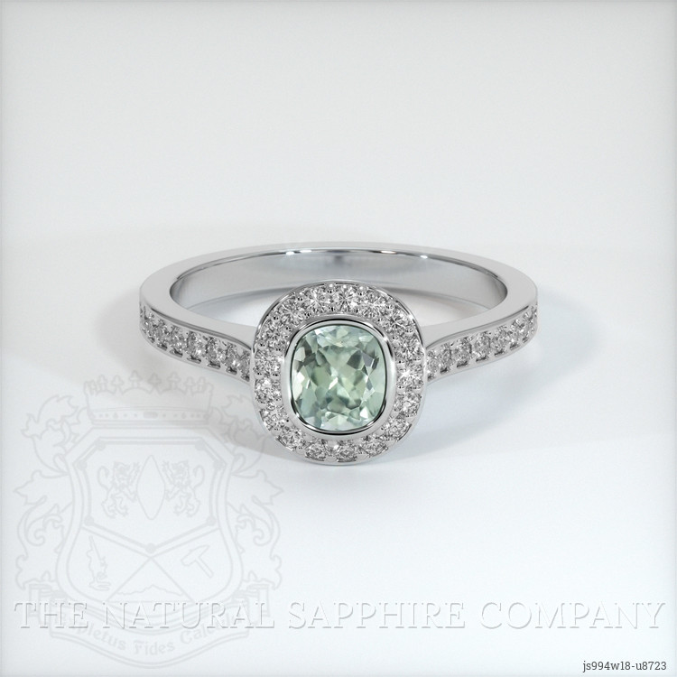 Pave Bluish Green Sapphire Ring 0.67 Ct., 18K White Gold