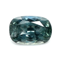 At The Natural Sapphire Company, we present an exquisite ring that captures the essence of elegance and individuality, inviting you to adorn yourself with a piece that resonates with your sophisticated persona. The centerpiece of this stunning creation is a rare bluish green sapphire, a gemstone that symbolizes wisdom and serenity. Carefully selected from the enchanting mines of Montana, this 0.77-carat sapphire, with its cushion shape and mixed brilliant cut, serves as a testament to your refined taste and aspirations.
