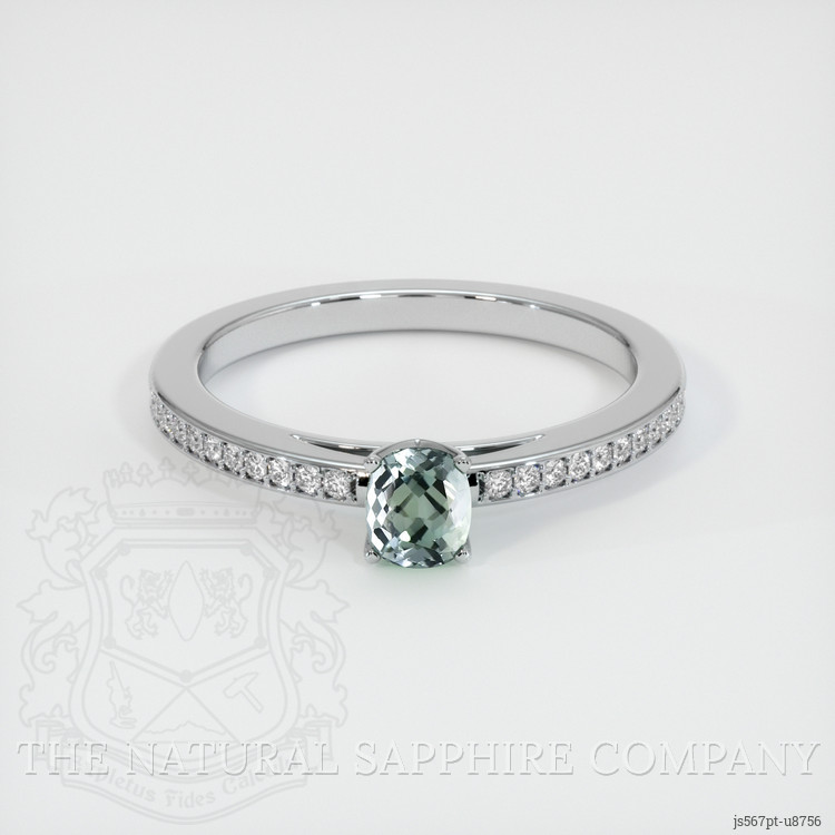 Pave Bluish Green Sapphire Ring 0.77 Ct., Platinum 950