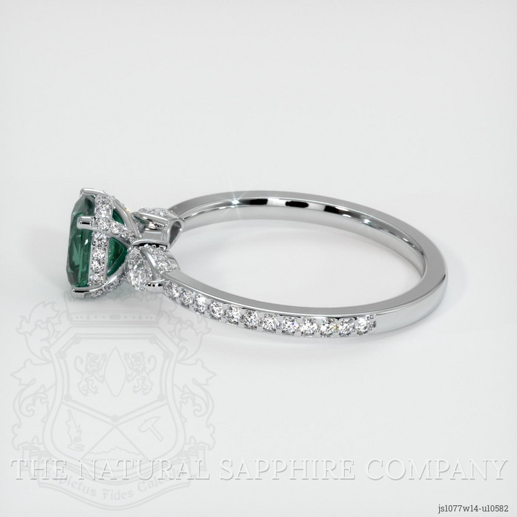 Three Stone Bluish Green Sapphire Ring 0.88 Ct., 14K White Gold