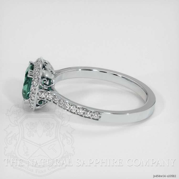Antique Style Bluish Green Sapphire Ring 0.88 Ct., 14K White Gold