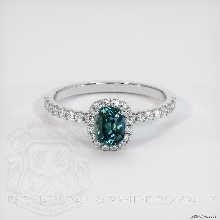 Pave Bluish Green Sapphire Ring 0.90 Ct., 14K White Gold