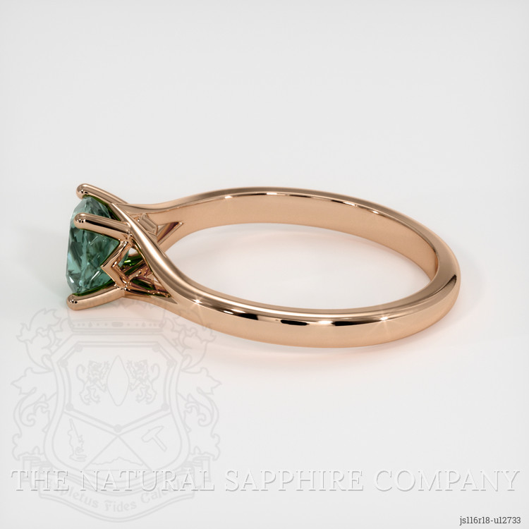 Solitaire Bluish Green Sapphire Ring 0.97 Ct., 18K Rose Gold