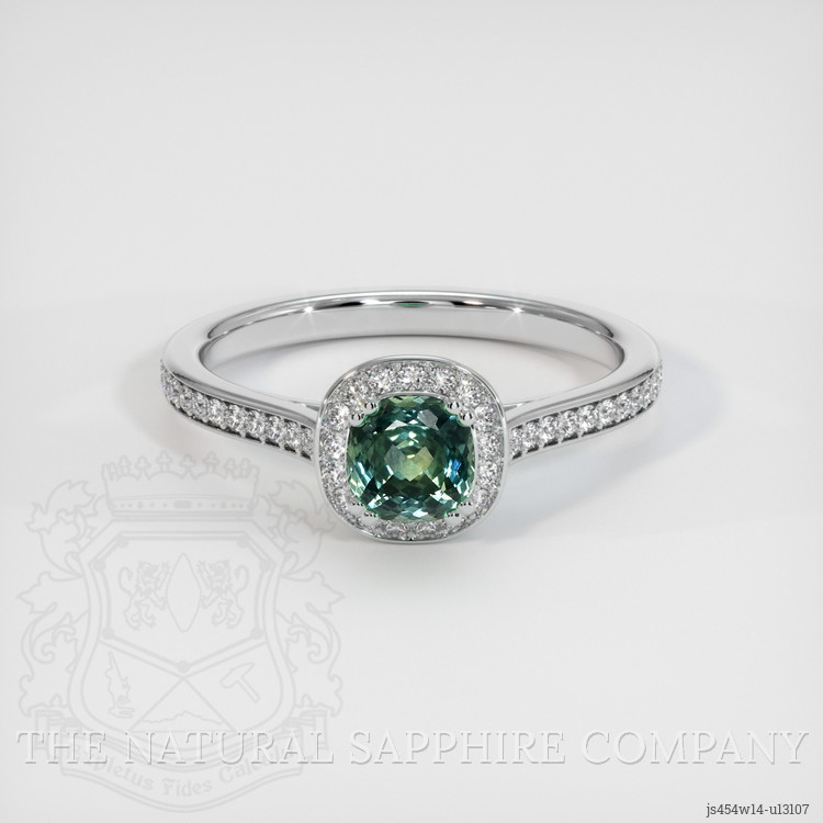 Antique Style Bluish Green Sapphire Ring 1.01 Ct., 14K White Gold