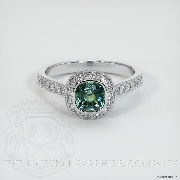 Pave Bluish Green Sapphire Ring 1.01 Ct., Platinum 950