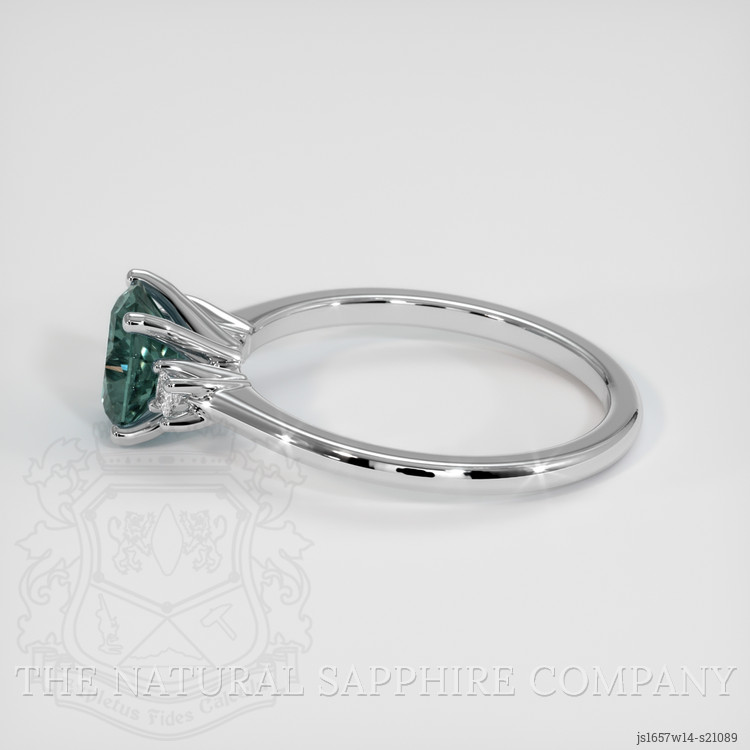 Three Stone Bluish Green Sapphire Ring 1.18 Ct., 14K White Gold