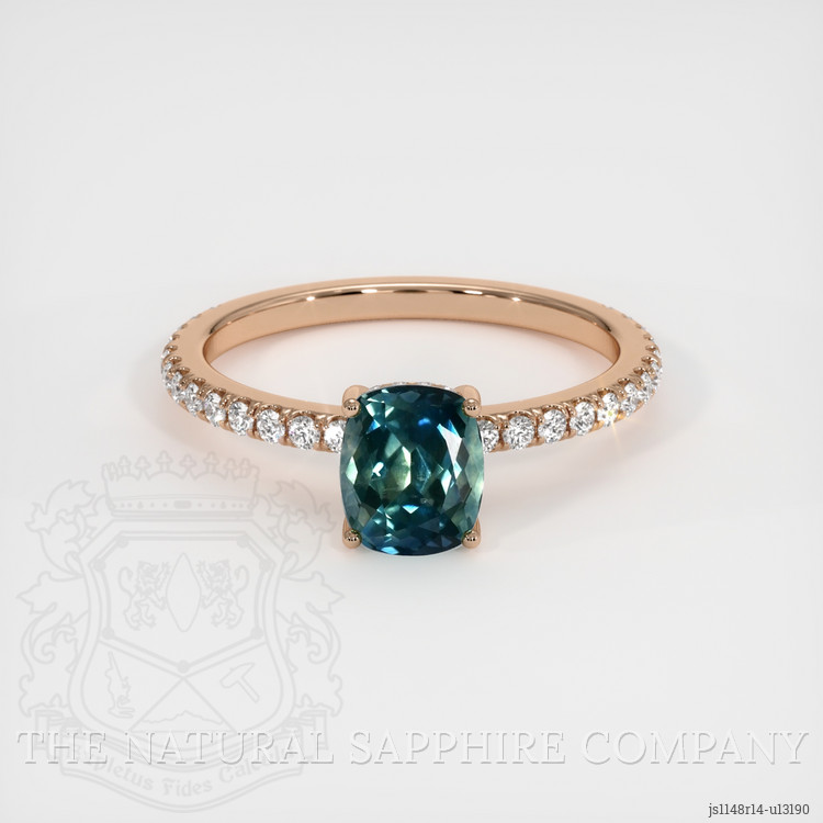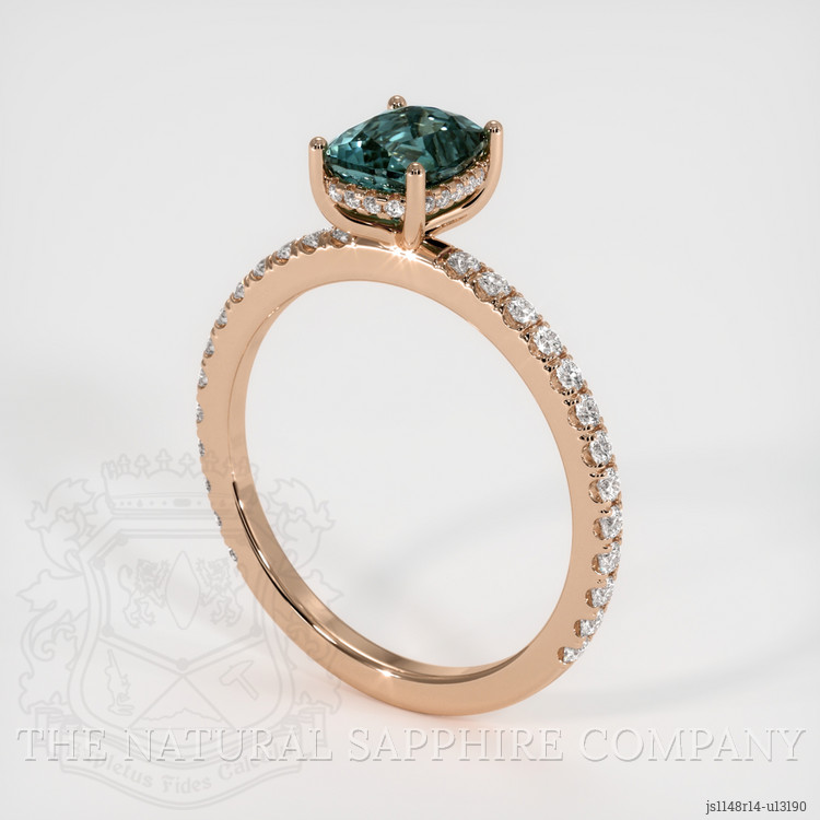 Pave Bluish Green Sapphire Ring 1.21 Ct., 14K Rose Gold