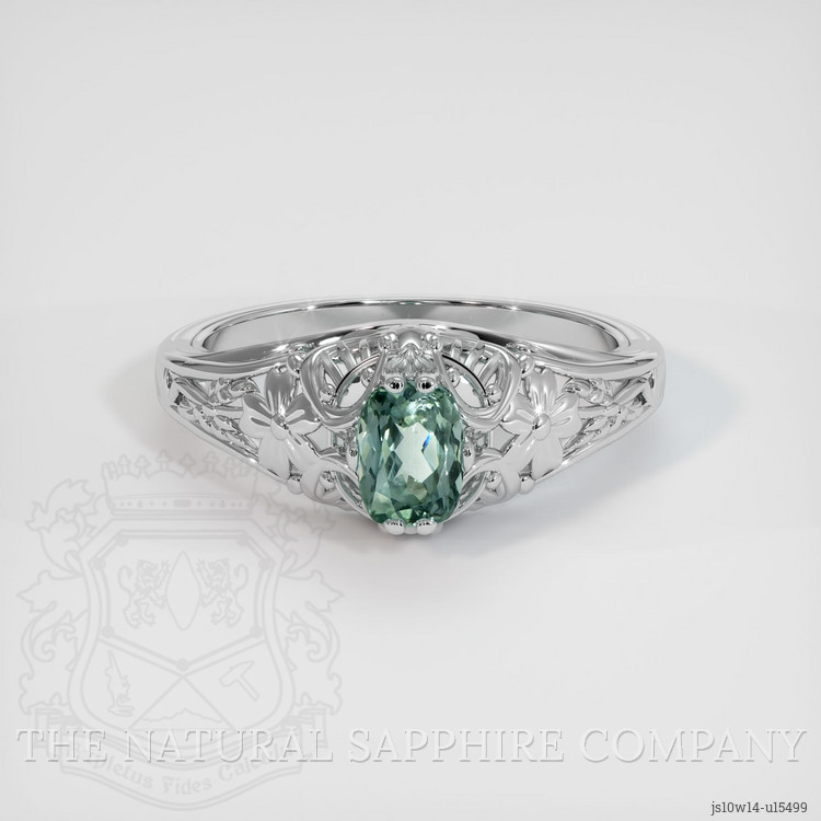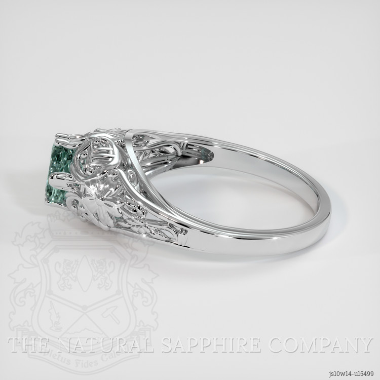 Antique Style Bluish Green Sapphire Ring 1.24 Ct., 14K White Gold