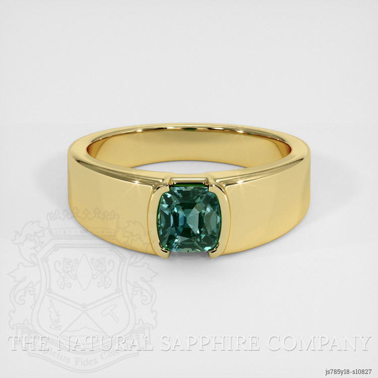 Men's Bluish Green Sapphire Ring 1.35 Ct., 18K Yellow Gold