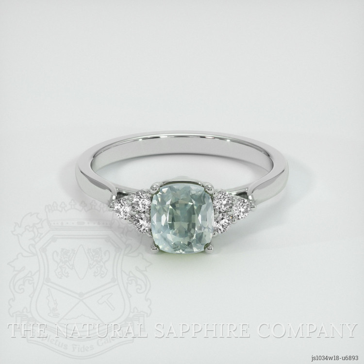 Accent Stones Bluish Green Sapphire Ring 1.93 Ct., 18K White Gold