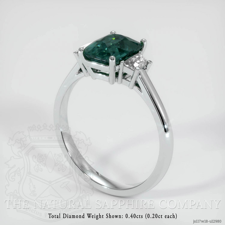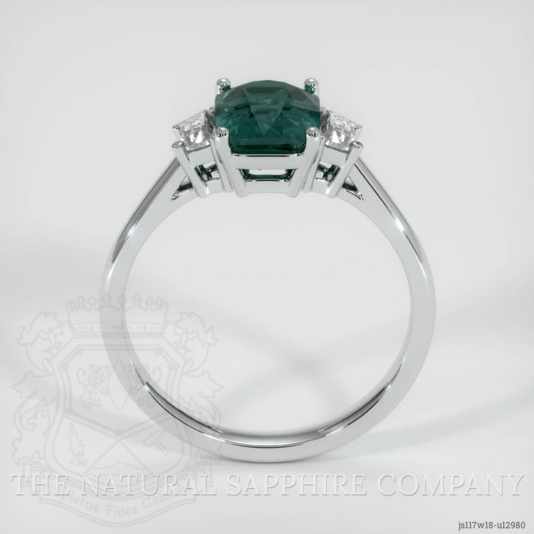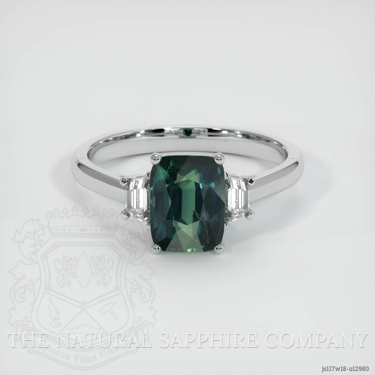 Three Stone Bluish Green Sapphire Ring 2.05 Ct., 18K White Gold