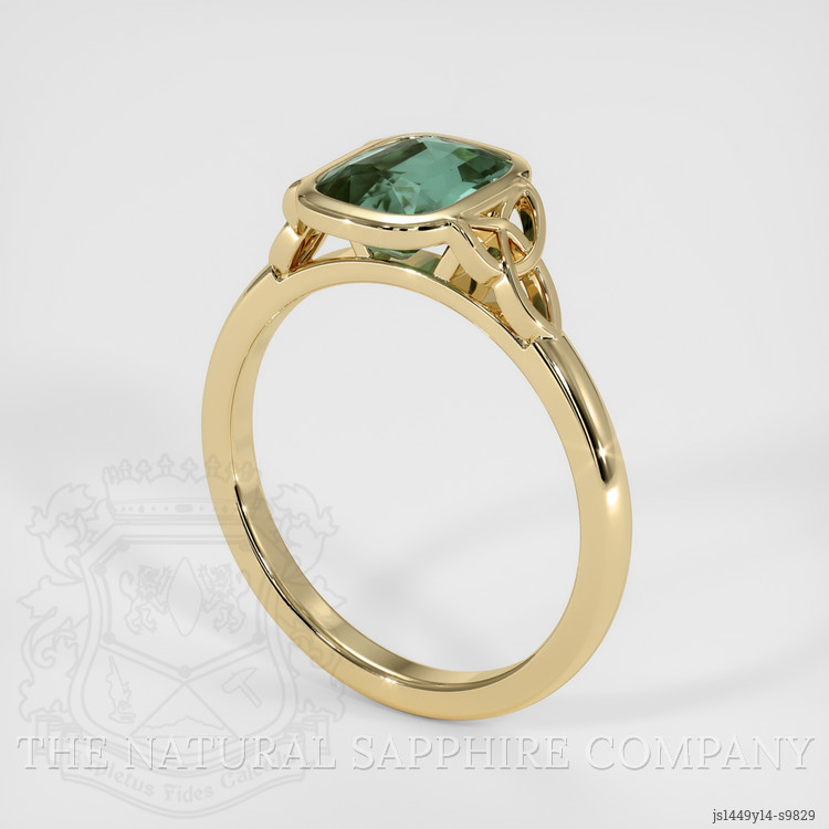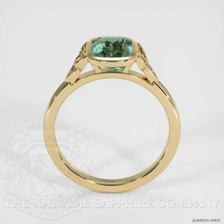 Bezel Bluish Green Sapphire Ring 2.09 Ct., 14K Yellow Gold