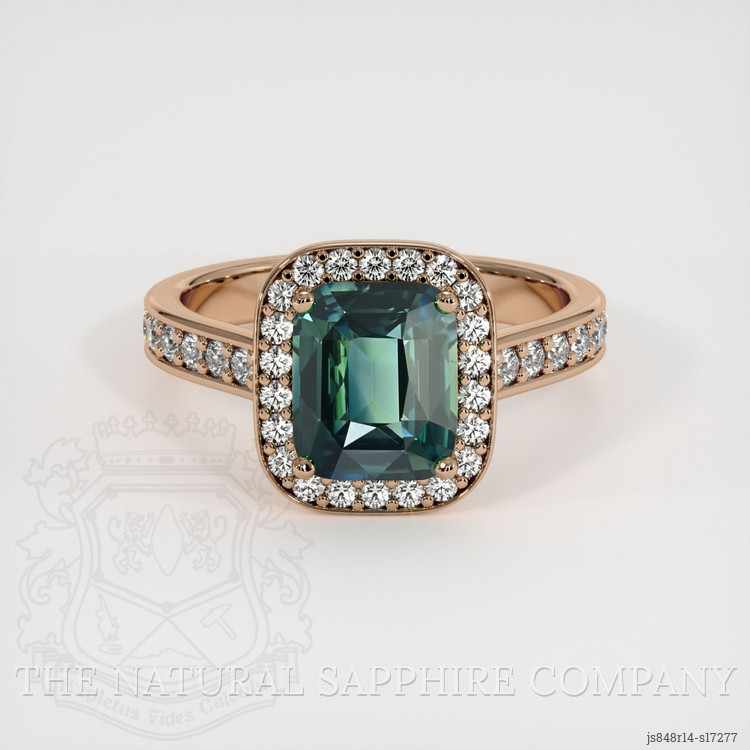 Pave Bluish Green Sapphire Ring 2.16 Ct., 14K Rose Gold