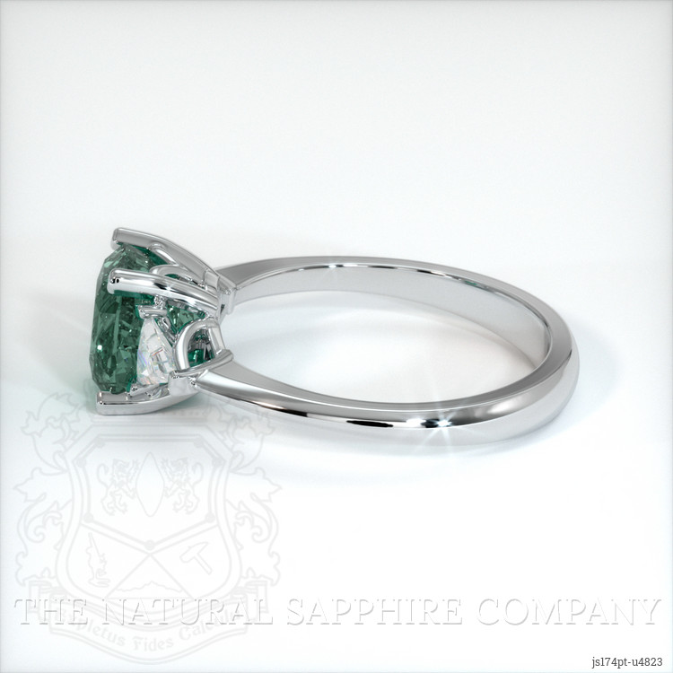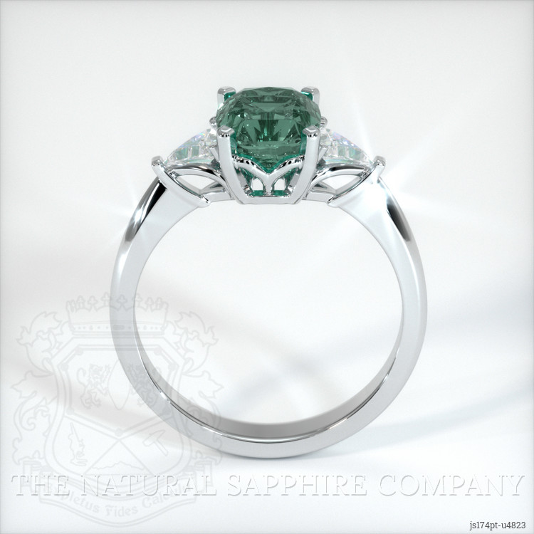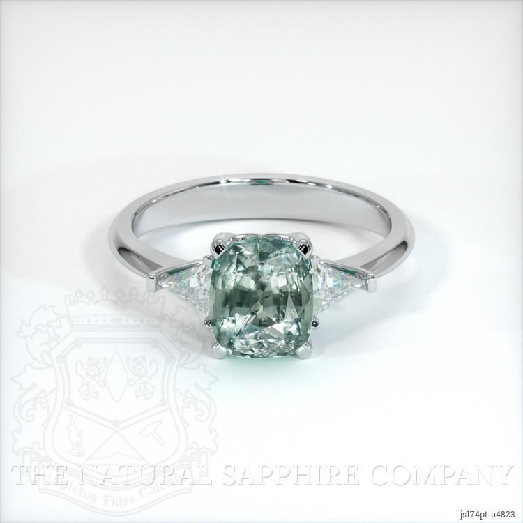 Three Stone Bluish Green Sapphire Ring 2.43 Ct., Platinum 950