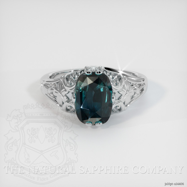 Antique Style Bluish Green Sapphire Ring 2.61 Ct., Platinum 950
