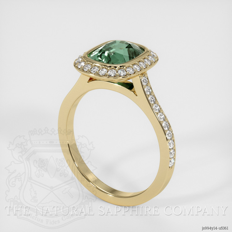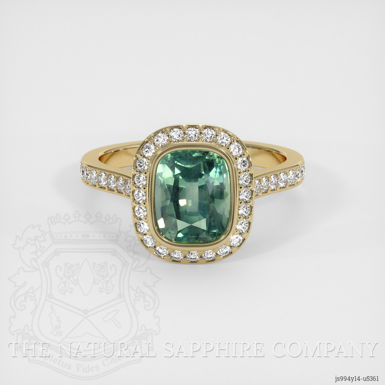 Pave Bluish Green Sapphire Ring 2.67 Ct., 14K Yellow Gold
