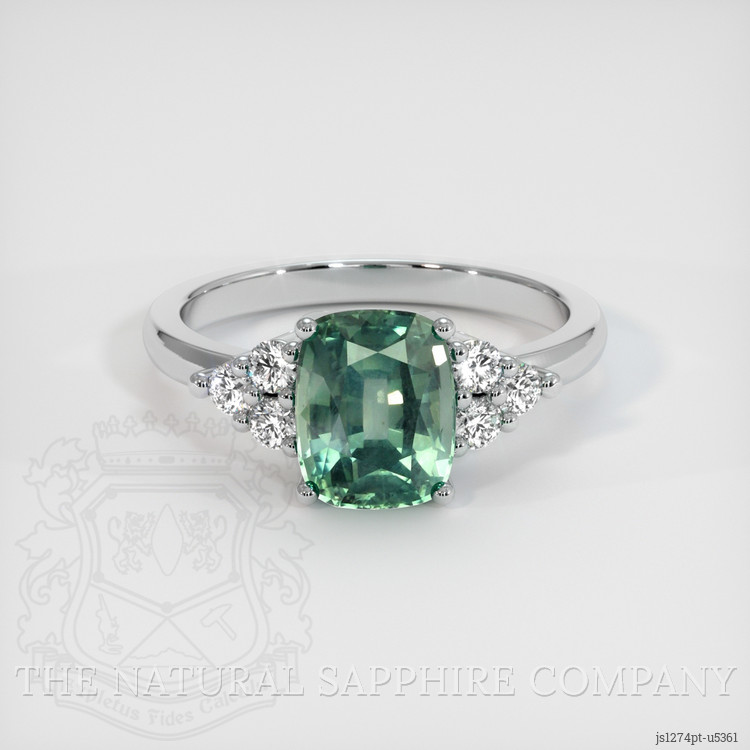 Accent Stones Bluish Green Sapphire Ring 2.67 Ct., Platinum 950
