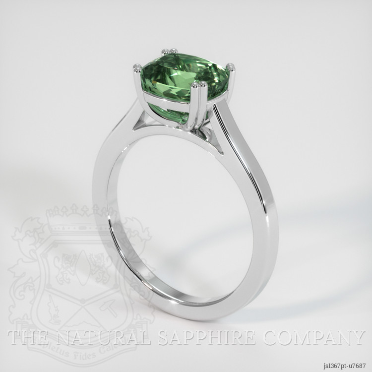 Solitaire Bluish Green Sapphire Ring 2.78 Ct., Platinum 950