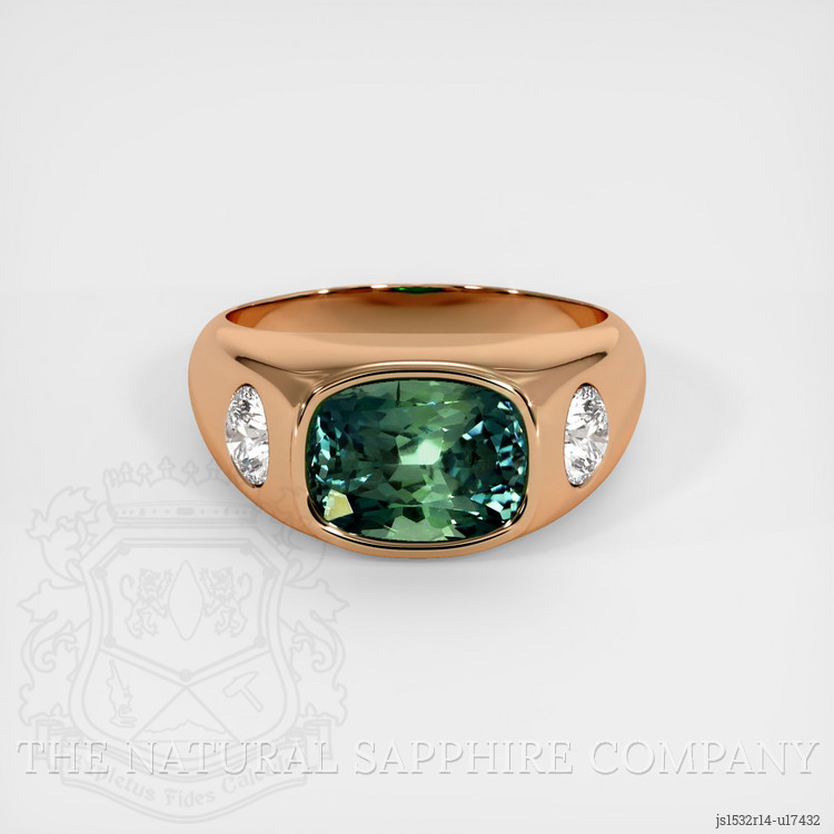 Men's Bluish Green Sapphire Ring 3.08 Ct., 14K Rose Gold