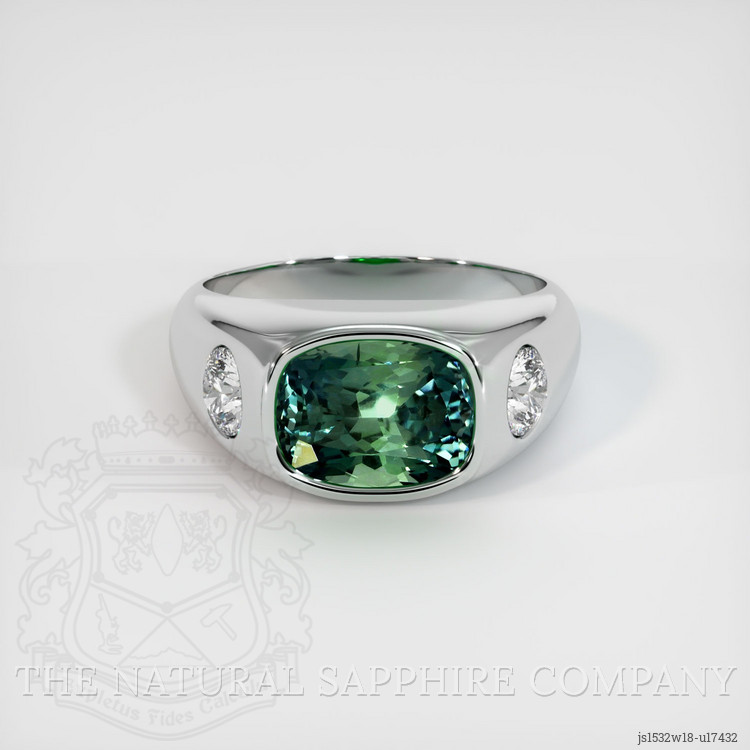 Men's Bluish Green Sapphire Ring 3.08 Ct., 18K White Gold