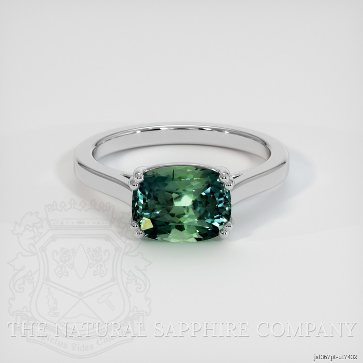 Solitaire Bluish Green Sapphire Ring 3.08 Ct., Platinum 950