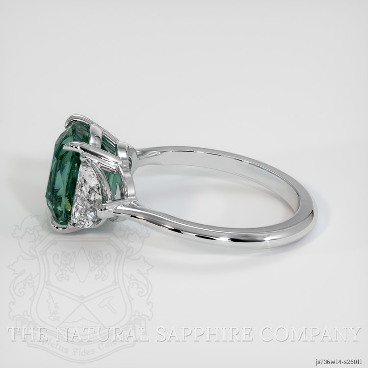 Three Stone Bluish Green Sapphire Ring 3.10 Ct., 14K White Gold