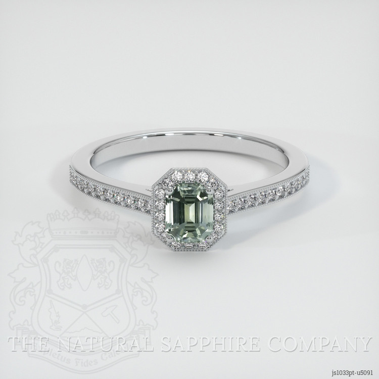 Pave Bluish Green Sapphire Ring 0.93 Ct., Platinum 950