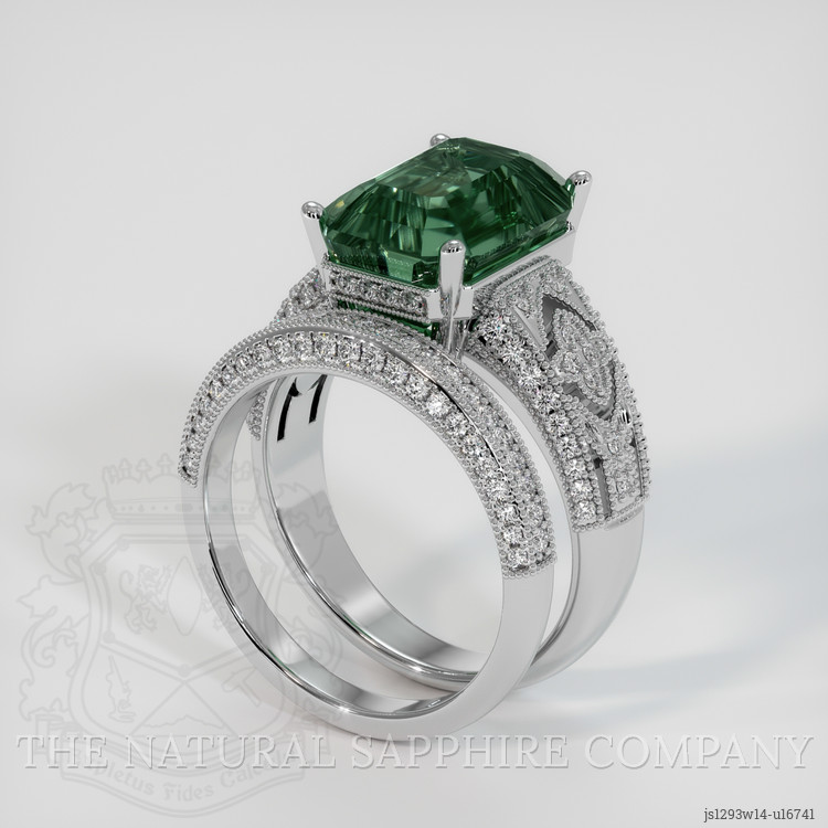 This is a rare and unforgettable engagement ring that speaks to a lifetime of devotion and refined taste, created by The Natural Sapphire Company with exceptional attention to gemological integrity and artisanal finish. At its heart sits a C.Dunaigre certified Intense Green 13.00 carat emerald cut shape greenish blue sapphire from Ceylon Sri Lanka, presented with dimensions 13.56, 10.21, 8.60 mm and a classic step cut that accentuates its architectural beauty. The sapphire is heat treated to reveal a vivid color saturation, it is eye clean when evaluated at eye level, and it displays an excellent polish that allows light to travel through every facet with serene depth. Surrounding this sovereign center gemstone are natural white round diamonds in carefully selected sizes and qualities, approximately 0.108 carats clarity VS color F G, approximately 0.52 carats clarity VS color F G, approximately 0.04 carats clarity VS color F G, and approximately 0.14 carats clarity VS color F G, each set to enhance brilliance without overshadowing the central emerald cut sapphire. The entire setting is crafted in platinum 950 to ensure enduring strength and a luminous cool tone that complements the greenish blue heartstone.
