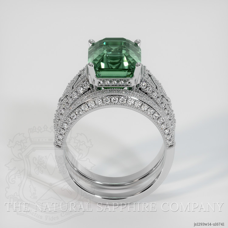 Antique Style Bluish Green Sapphire Ring 13.00 Ct., 14K White Gold