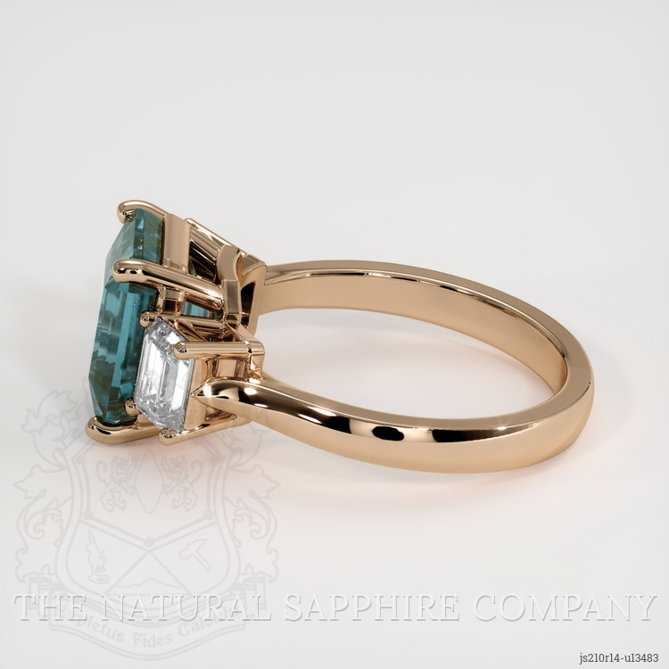 Three Stone Bluish Green Sapphire Ring 5.03 Ct., 14K Rose Gold