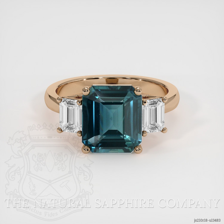 Three Stone Bluish Green Sapphire Ring 5.03 Ct., 18K Rose Gold