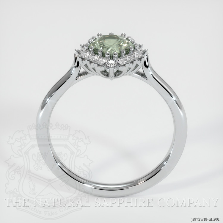 Halo Bluish Green Sapphire Ring 0.81 Ct., 18K White Gold