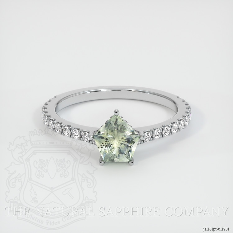 Pave Bluish Green Sapphire Ring 0.81 Ct., Platinum 950