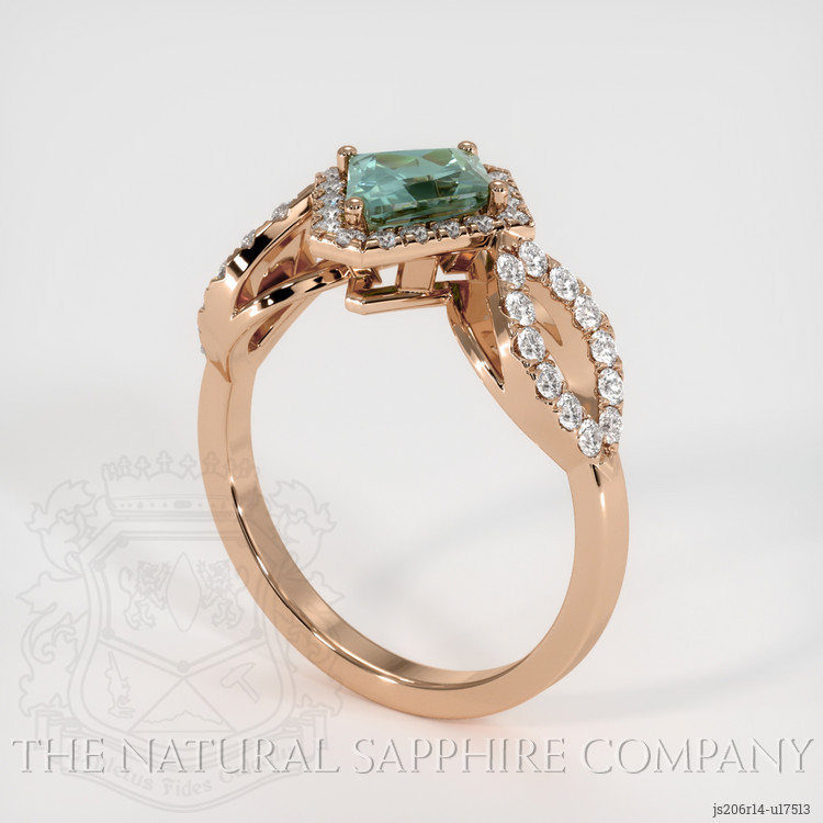 Pave Bluish Green Sapphire Ring 1.01 Ct., 14K Rose Gold