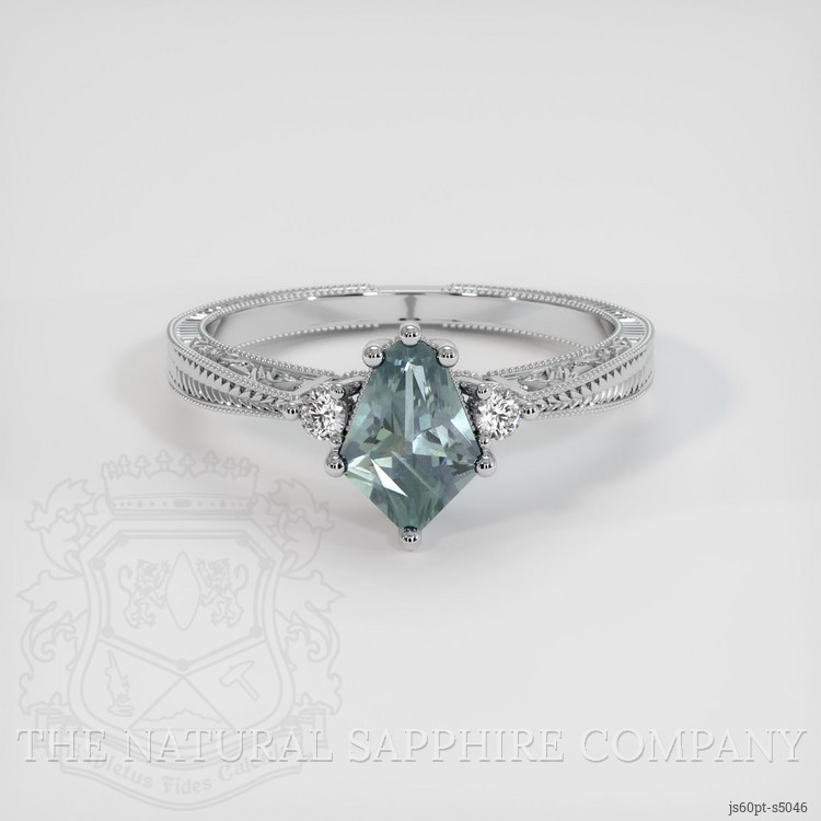 Antique Style Bluish Green Sapphire Ring 1.09 Ct., Platinum 950