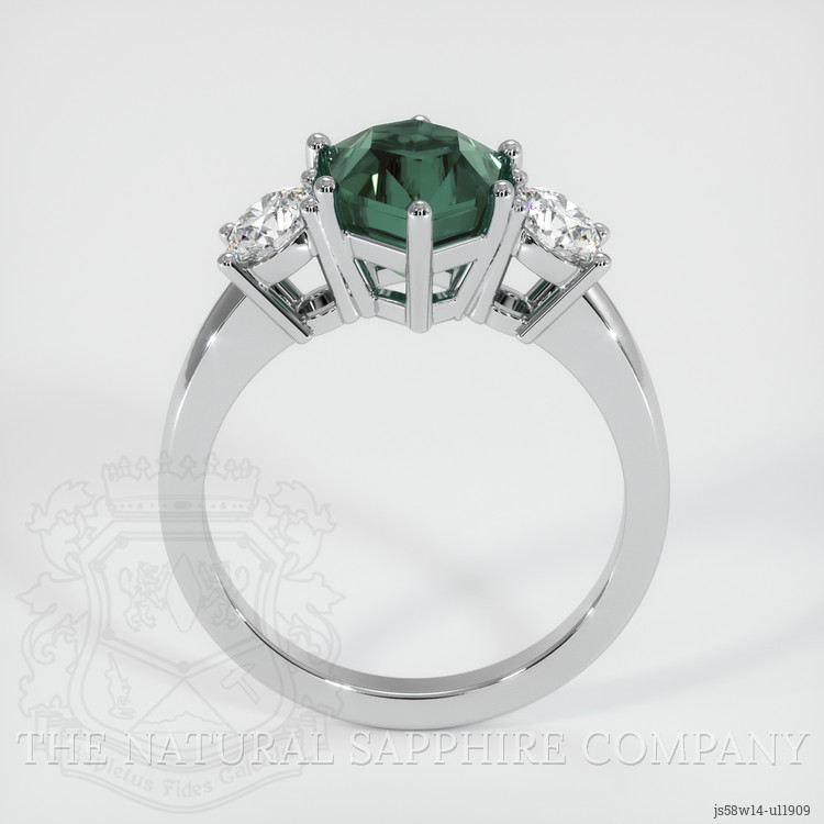 Three Stone Bluish Green Sapphire Ring 2.44 Ct., 14K White Gold