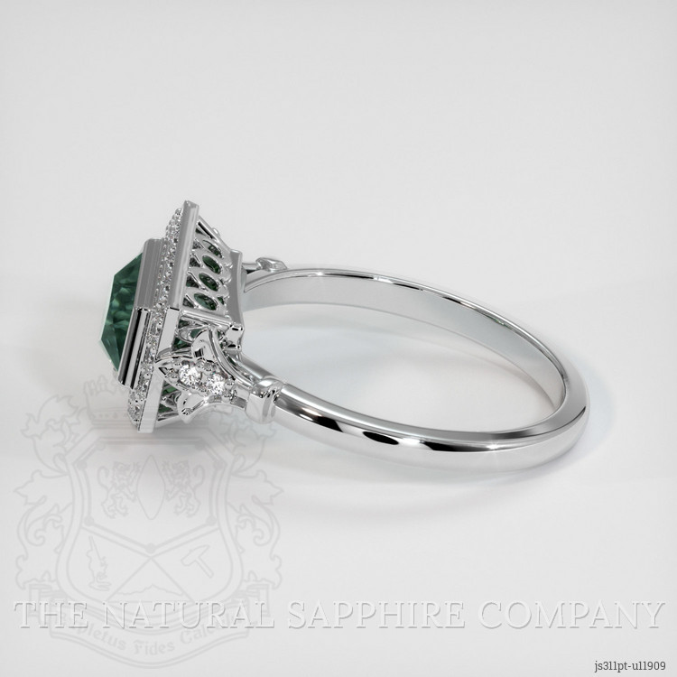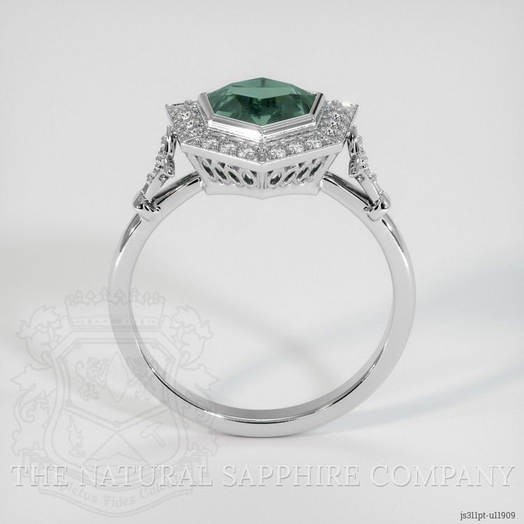 At The Natural Sapphire Company, we take pride in presenting a breathtaking creation that merges the grandeur of nature with unparalleled craftsmanship. This exquisite ring is the epitome of grace and timeless elegance, featuring a mesmerizing 2.44 carat fancy shape bluish green sapphire. With dimensions of 7.37 x 7.64 x 5.93 mm this gemstone is a marvel, celebrated for its intense color saturation and clarity that is described as eye clean at eye level. This stunning sapphire, hailing from the storied lands of Montana, showcases an excellent polish and a brilliant cut that catches the light from every angle.