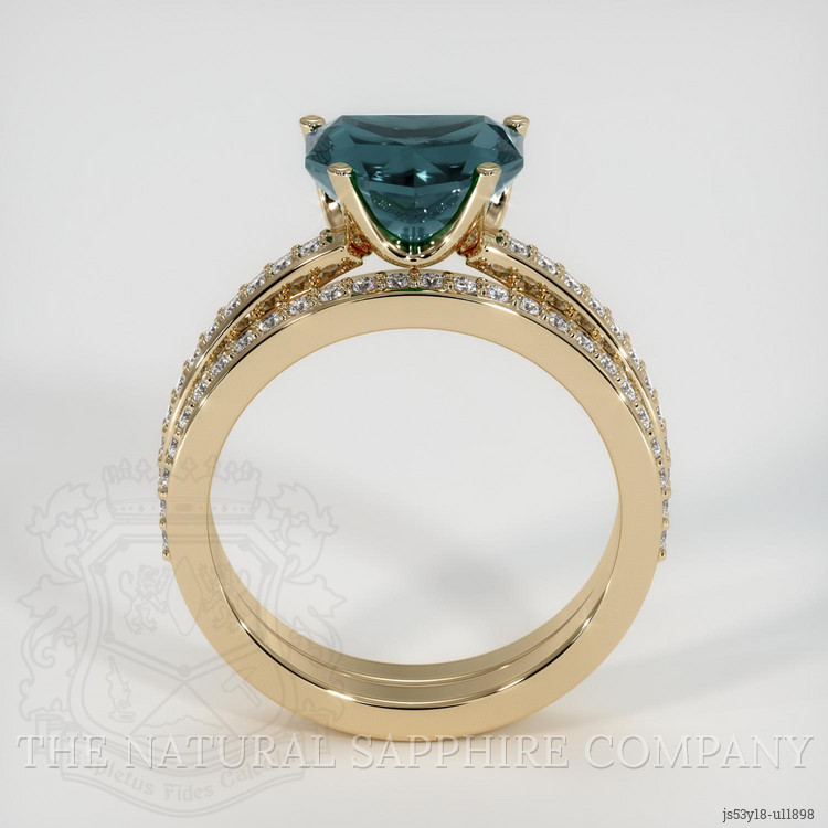 Pave Bluish Green Sapphire Ring 2.59 Ct., 18K Yellow Gold