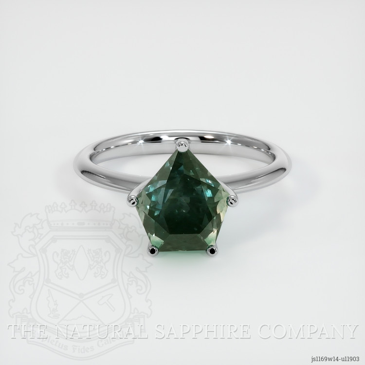 Solitaire Bluish Green Sapphire Ring 3.44 Ct., 14K White Gold