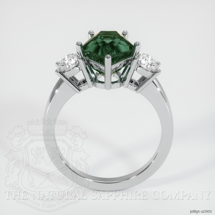 Three Stone Bluish Green Sapphire Ring 3.44 Ct., Platinum 950