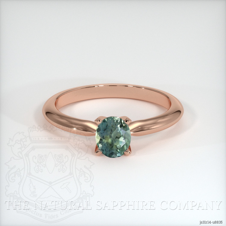 Solitaire Bluish Green Sapphire Ring 0.70 Ct., 14K Rose Gold