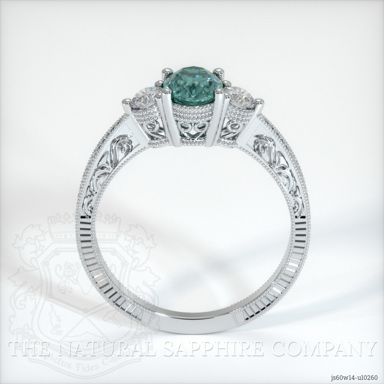Antique Style Bluish Green Sapphire Ring 0.73 Ct., 14K White Gold