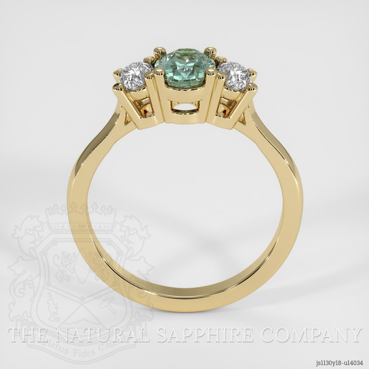 Three Stone Bluish Green Sapphire Ring 0.75 Ct., 18K Yellow Gold