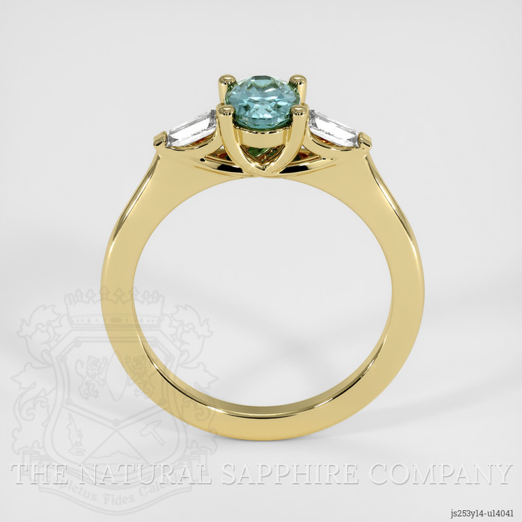 Three Stone Bluish Green Sapphire Ring 0.77 Ct., 14K Yellow Gold