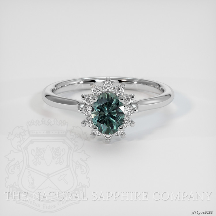 Antique Style Bluish Green Sapphire Ring 0.77 Ct., Platinum 950