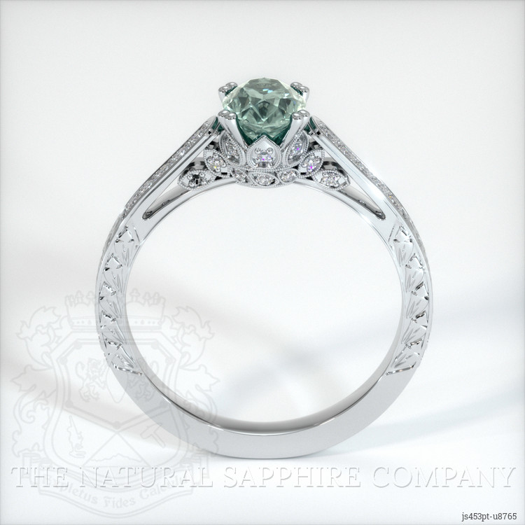Antique Style Bluish Green Sapphire Ring 0.80 Ct., Platinum 950